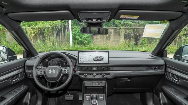 进入车内,2026款本田CR-V的内饰设计虽然没有新势力车型的前卫设计,但实用主义理念反而适合我这样的老司机,26款车型的中控屏升级为12.3英寸,并取消了屏幕左侧的旋钮和按键,改为全触控操作。此前被用户吐槽的蜂窝状贯穿式空调出风口也进行了改良,采用渐变设计并封闭了格栅中央,解决了积灰问题。三辐式方向盘握感扎实,表面也增加了打孔皮质包覆。不过,内饰材质仍以软质塑料为主,塑料感在某些区域仍然明显,质感表现中规中矩。